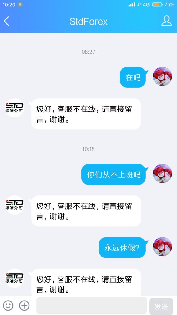 STDforex客服永远不在线,不理任何提问投诉