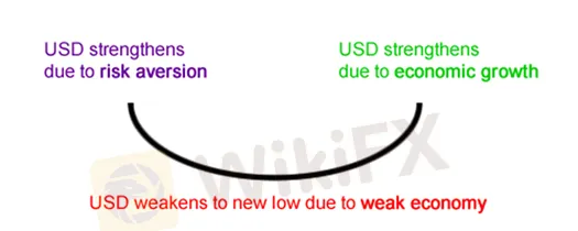 微笑的第一部分表明美元從規避風險中受益,風險規避使投資者逃往美元和日元等“避風港”貨幣。