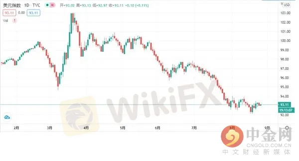 摘要:週三(8月26日)亞洲時段,美元指數震盪上漲,現交投於93.11一線。