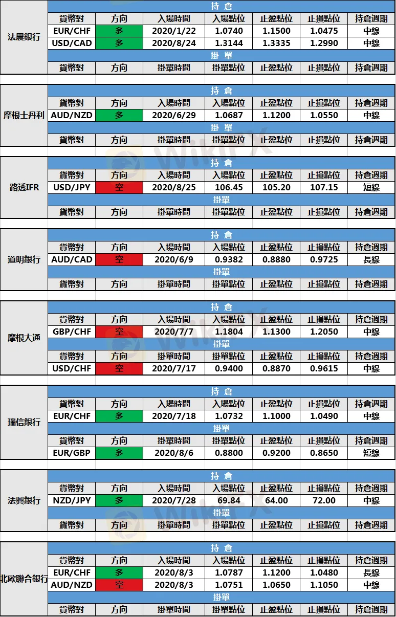 (1)三菱日聯澳元/日元空頭持倉止損出局。