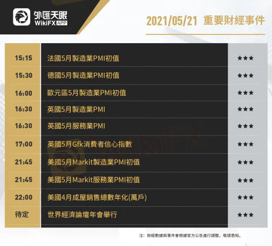以下為5月21日(周五)重要財經事件,更多資訊,請關注外匯天眼APP或官方網站!