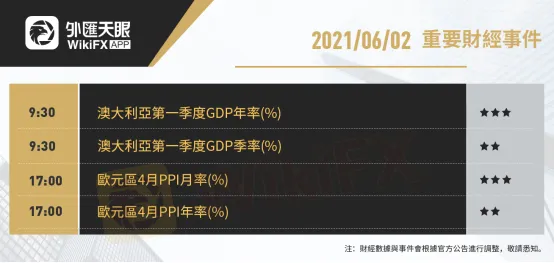 以下為6月2日(周三)重要財經事件,更多資訊,請關注外匯天眼APP或官方網站!