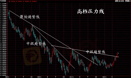 開始交易最簡單的方式,是學習並應用趨勢線。您首先必須畫出一根直線,連接圖表上的兩個點。要畫一根上升的趨勢線,連接連續的兩個低點。要畫一根下降的趨勢線,連接連續的兩個高點。您會註意到,市場(價格)在重拾一種趨勢之前,將朝一根趨勢線回檔。當價格突破一根趨勢線,則趨勢結束。趨勢線持續的時間越長、被考驗的次數越多,則越重要。請註意,當市場觸及一根趨勢線三次,則這根趨勢線有效。