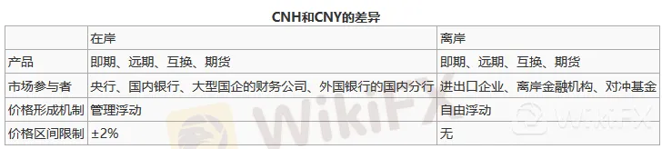 離岸人民幣與在岸人民幣兩個市場的參與者、價格形成機製、以及交易量方面都有較大差別: