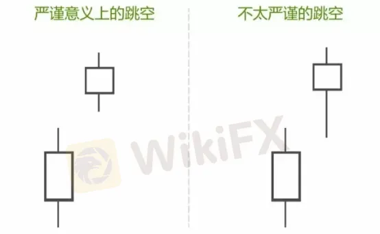 不管是嚴謹的還是不嚴謹的跳空形態,前後蠟燭的實體部分一定不能有重疊!