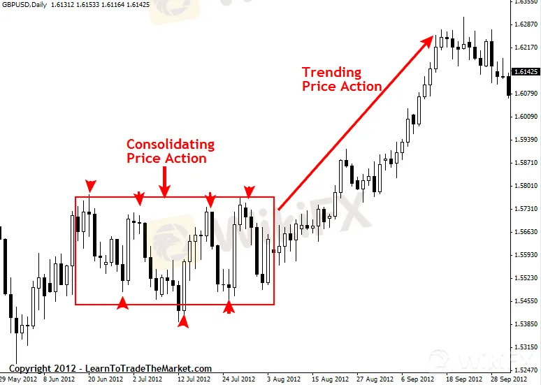 市場主要通過三種方式移動:向上、向下和橫向。向上的市場處於上升趨勢,其特徵是圖表上更高的高點和更高的低點。價格盤整期間形成的更高的低點,是與既定趨勢相反的短期價格變動。它們通常是由已經處於上升趨勢的交易者的盈利訂單形成的。