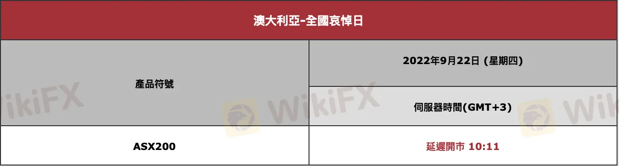 因澳大利亞宣佈9月22日為全國哀悼日致敬已故英女王,以下產品的市場交易時間將在此期間進行調整。