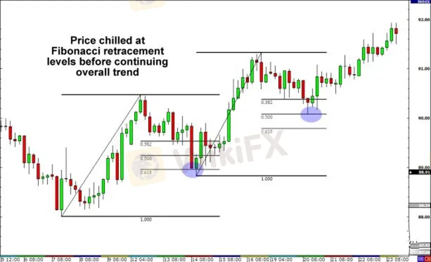 在大多數情況下,價格回檔在繼續整體趨勢之前徘徊在38.2%、50.0%和61.8%的斐波那契回檔水準。如果價格超過這些水準,這可能是反轉正在發生的信號。