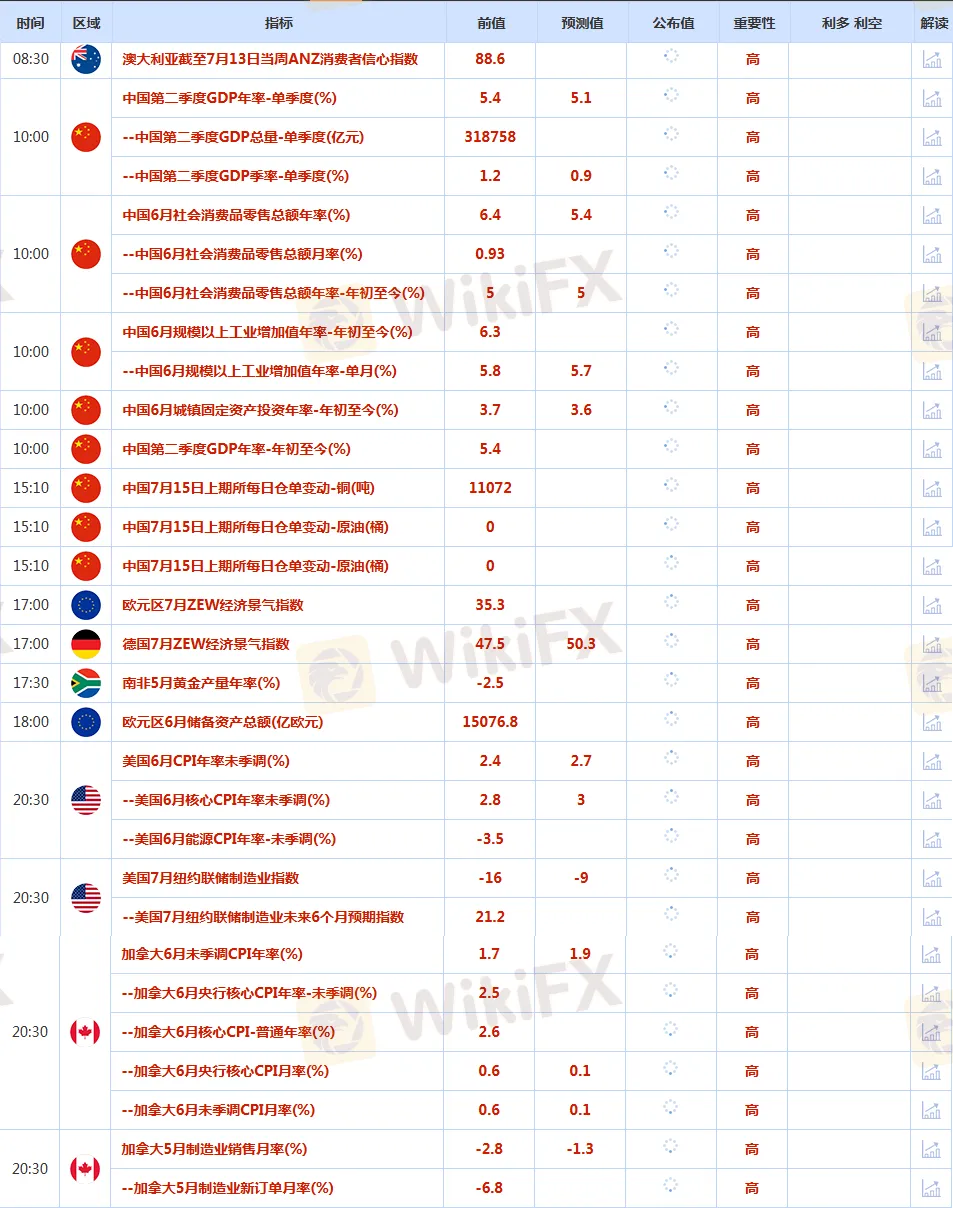CWG Markets市場資訊2025年7月15日(週二):