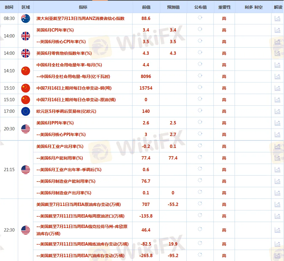 摘要:CWG Markets市場資訊2025年7月16日(週三):匯訊摘要:週二,在溫和的通脹報告引發美聯儲可能暫時維持利率不變的猜測後,美元指數持續拉升,最終收漲0.54%,報98.596。 美債收益率攀升,基準的10年期美債收益率收報4.488%,2年期美債收益率收報3.959%,30年期國債收益率自6月以來首次升至5%。週三(7月16日)亞市早盤,現貨黃金震盪微漲,現時交投於3330美元/盎司附近