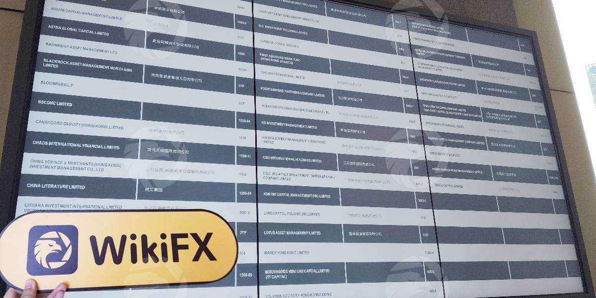 現場訪問人員未找到關於此經紀商的任何資訊。詢問接待處後得知並無此公司,由此判斷其為虛假。透過大堂區域,由於無法進入公司內部,他們無法觀察內部辦公環境。整體情況與其聲稱的定位不符。